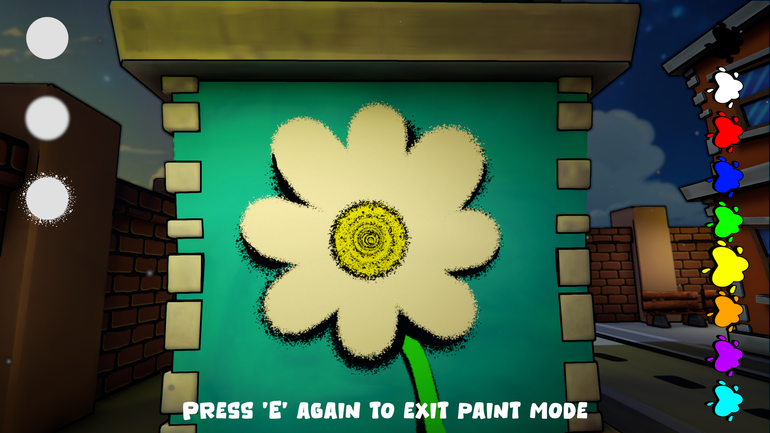 If we decide to continue development, we would like to expand the city, painting mechanics and add a mission based story. Advancing story would open new colors and nozzles for the player to use.
